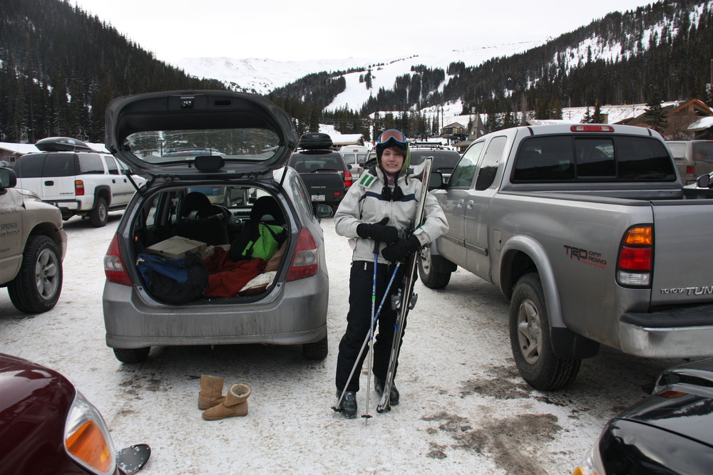 As excited as we are about the new vehicle, I thought I would post a few pictures to remember the almost 80,000 km the Fit took us on. We drove to Florida in 2008 for $47. It was a little more coming back but still under $100 round trip for both of us! Plus we used it as a hotel on the way(as you can see in the photographs). For family day weekend in 2009 we drove it to Boston and slept in it again on the way… in February…Brrr. Last Christmas we drove it to Colorado. We drove through Nebraska and Iowa at the tail end of one of the worst snowstorms I have ever been in and amazingly it stayed on the road when all we could see were cars in the ditch. We have loaded it with bikes, camping gear, furniture, tools, the dog, and brought our baby home in it.