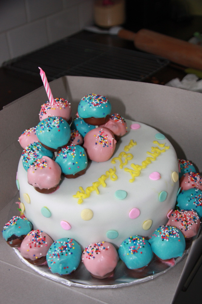 Another thing I had wanted to try for quite a while was fondant. I just bought store bought since it was my first time and I figured rolling it out would be difficult enough. I kept it simple and didn’t try to dye it or anything like that- just did a simple white layer of fondant on which I could place the 23(since it was her 23rd birthday) cake pop cupcakes.