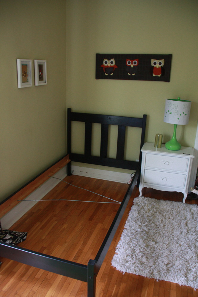 As if you painted that bed already!! Looks great! That black paint has super magical powers:). . .and I do love what you did with the dresser. I agree the drawers were horrible to open. . .although I know you think it’s ‘Myles’ proof right now cause he can’t get under it. . .he IS going to be standing soon enough and his little fingers will get into your apple tv. .!! lol Then you will be thankful for sticky hard to open ‘kid proof’ drawers!!