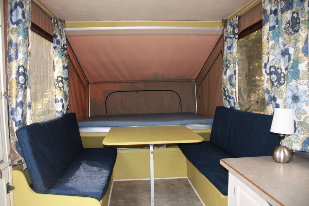 You can even make a tent trailer look amazing! Such a talent!! I love the pattern on the curtains, seeing your blogs always makes me want to learn how to sew.