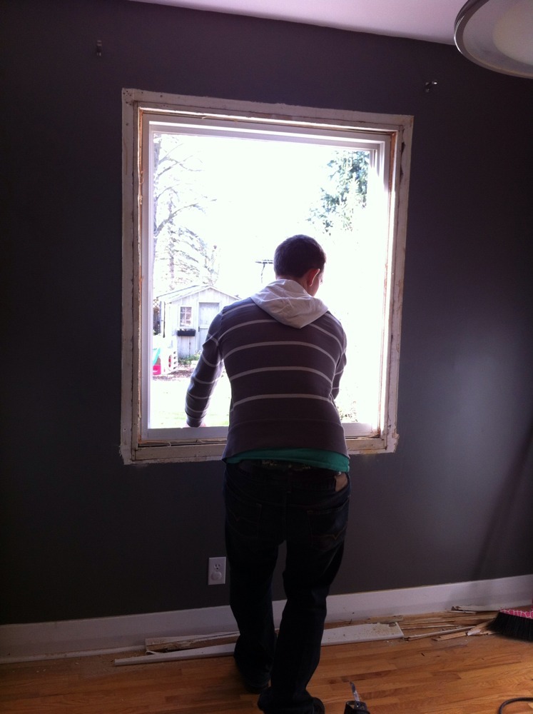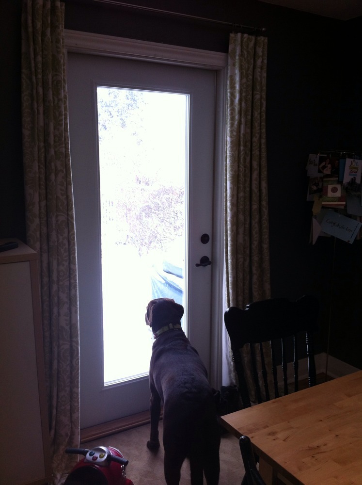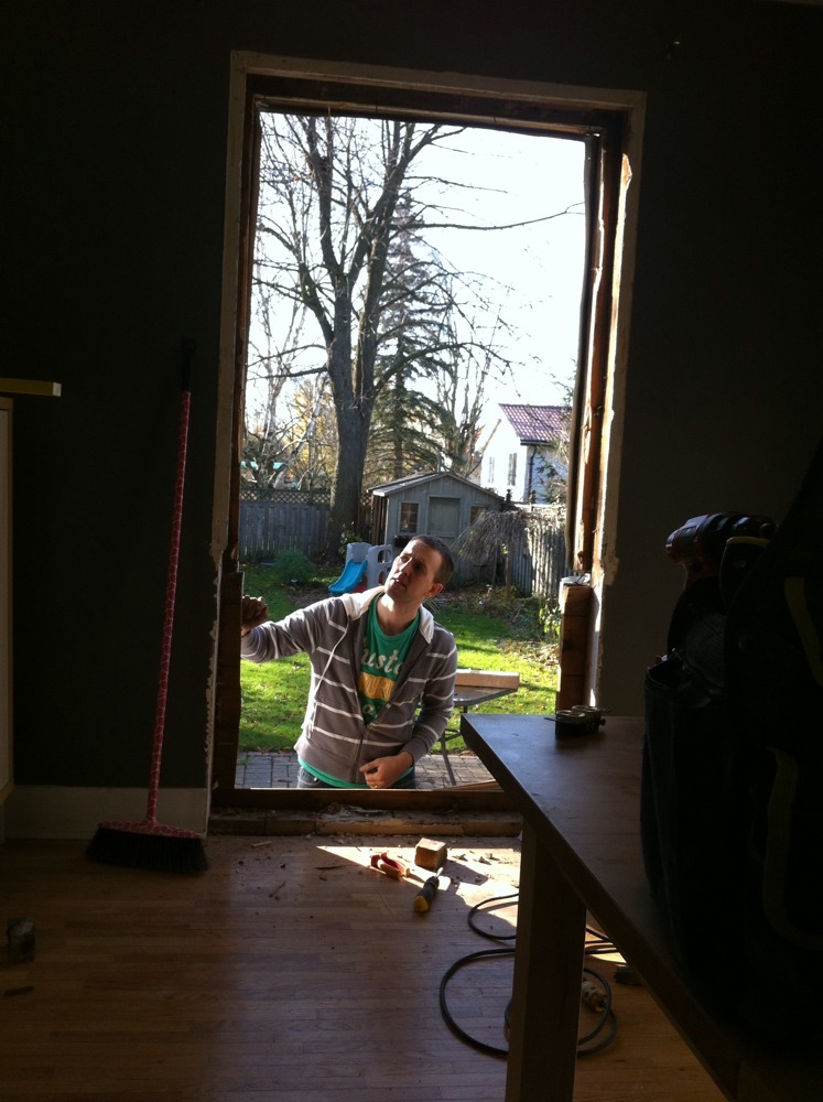 We have had a fabulous winter for projects; there have only been a handful of really snowy days and many where the snow melted and it felt like early spring. We are currently in the process of building a garage which you will hear about later but in late fall one morning, Aaron decided it was the day to install the door we had purchased months earlier for our dining room.