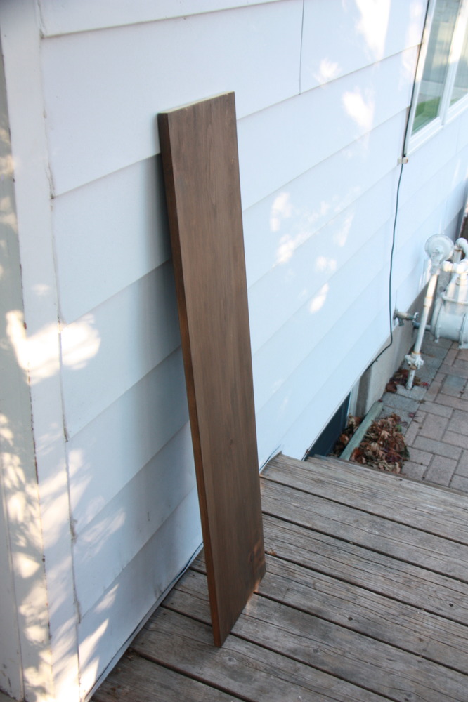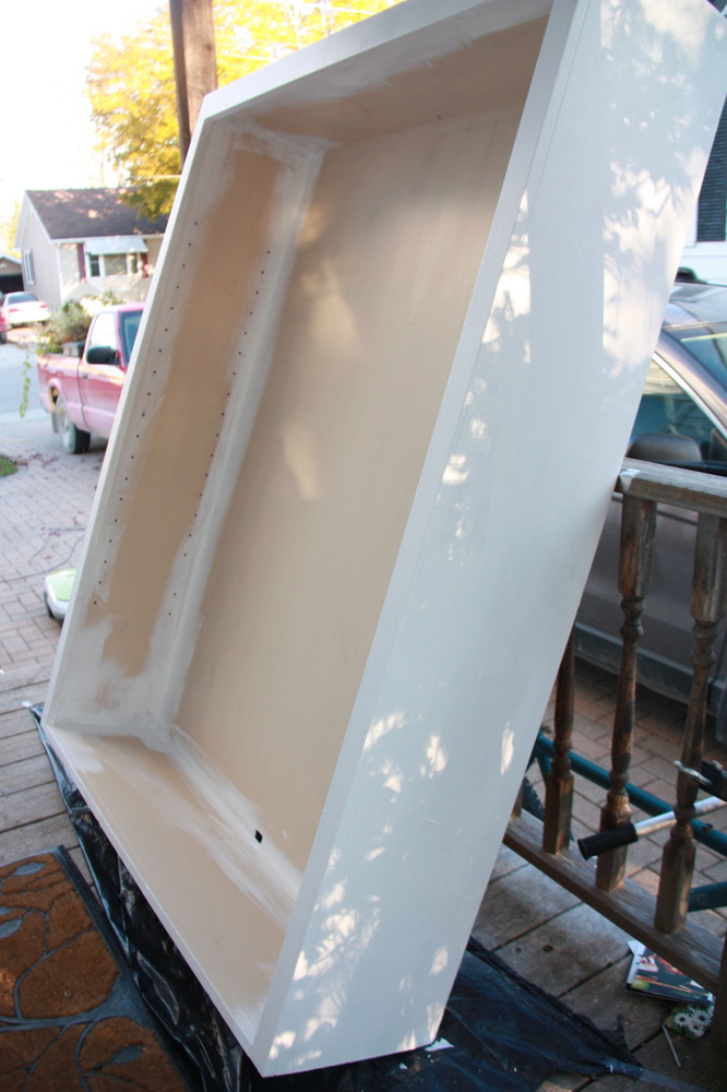 I primed and painted the bookcase portion while Aaron sanded down the shelves. We decided to stain the shelves the same dark brown as our counters to tie everything together.