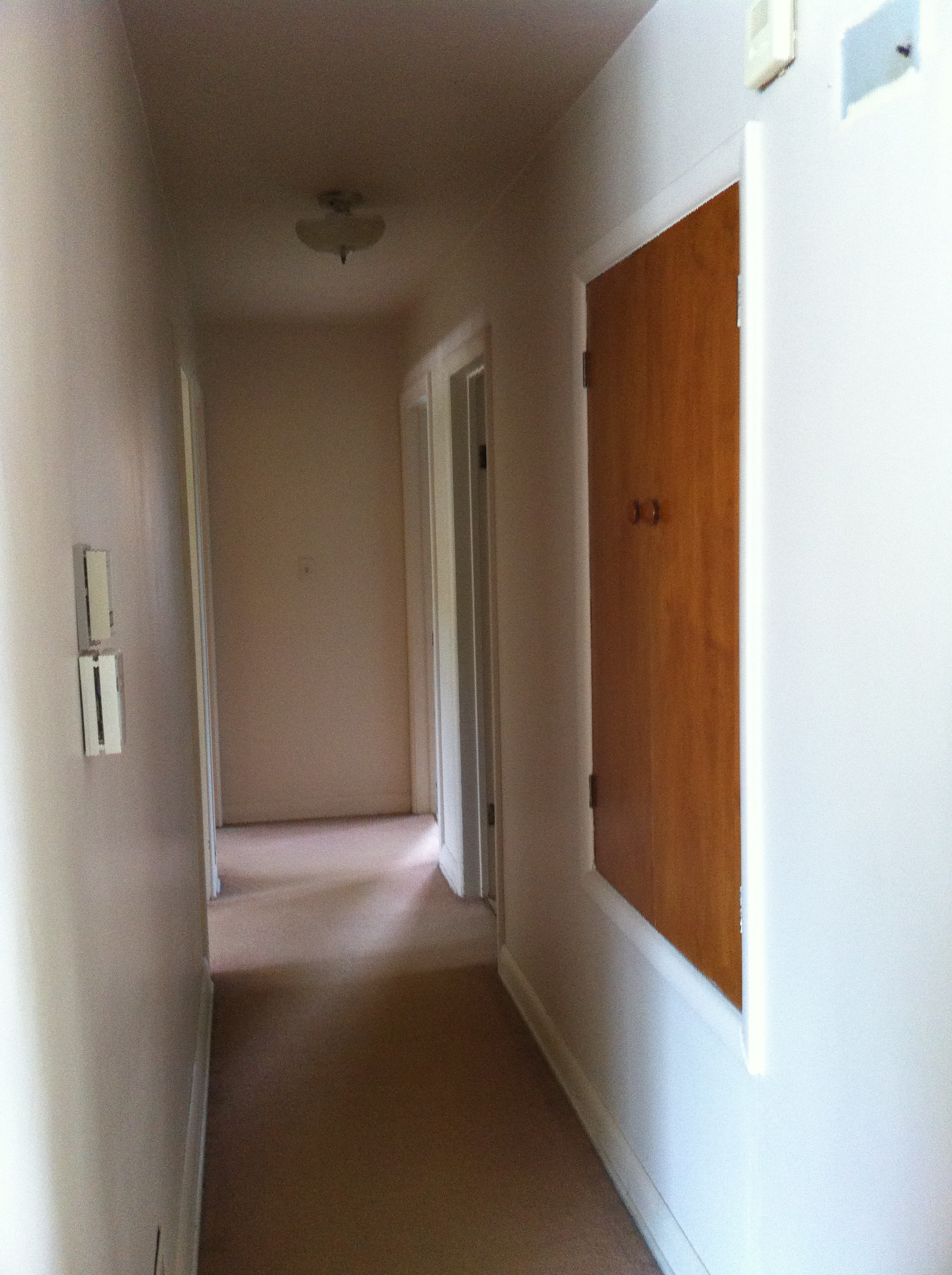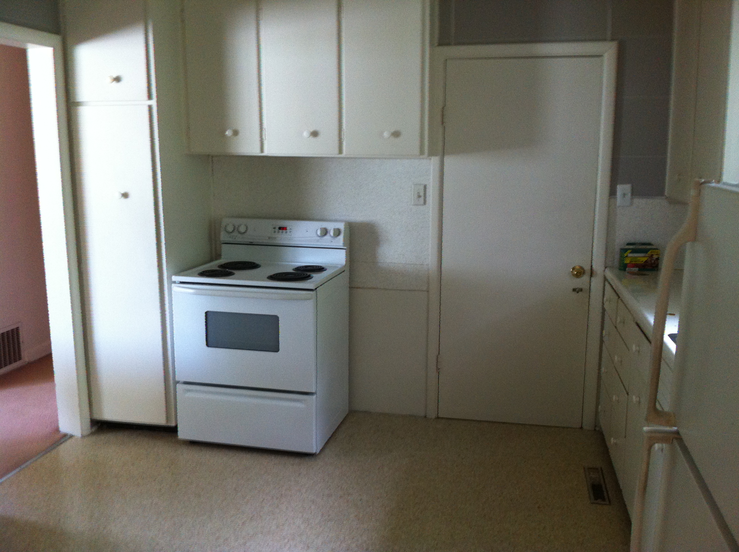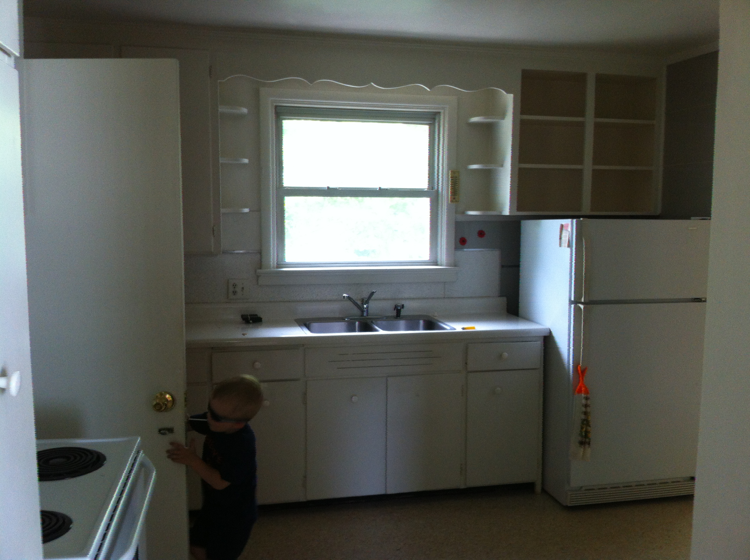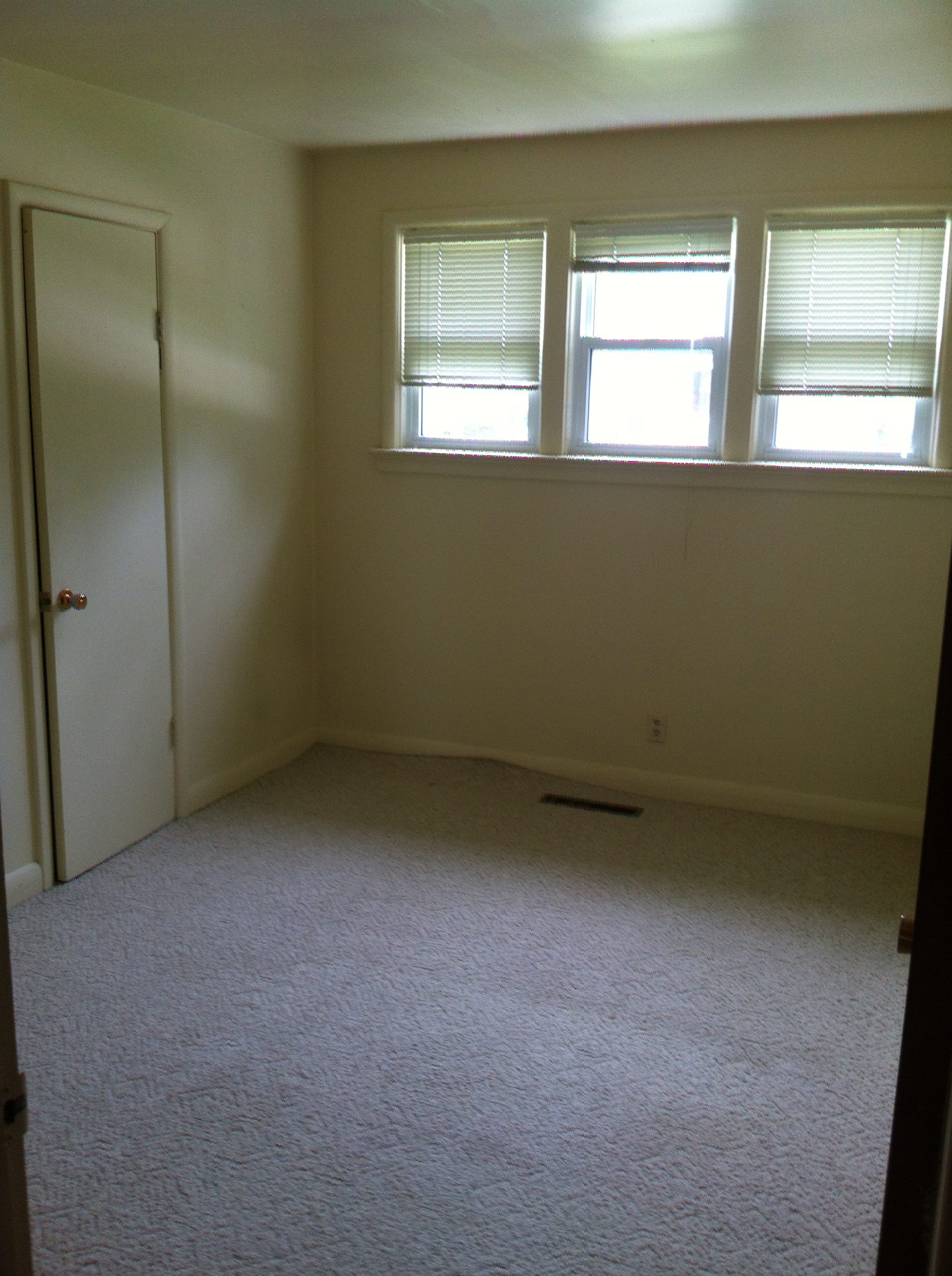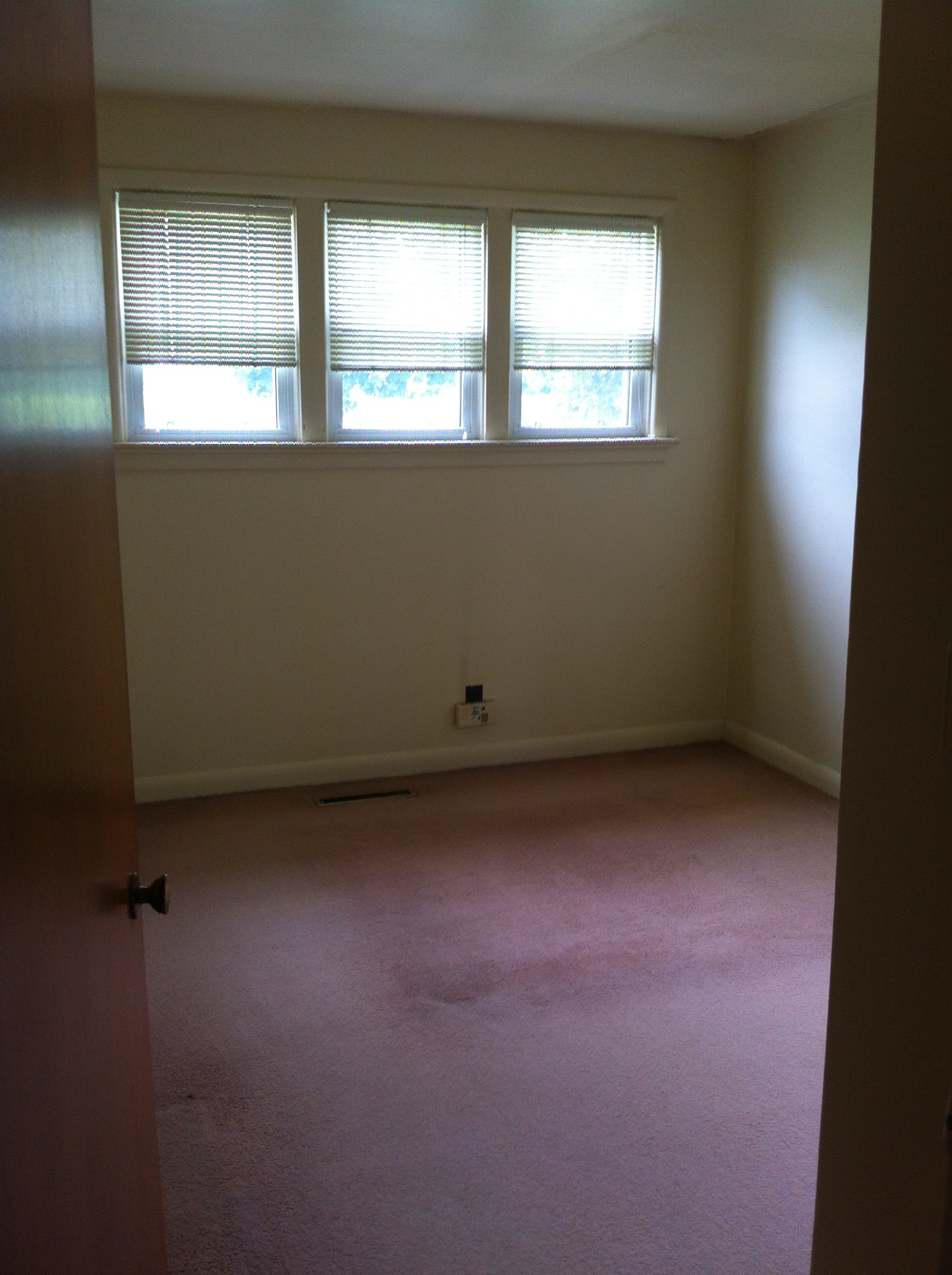 For our 5th anniversary, we bought ourselves a house! Well it just happened to all unfold on our anniversary. The house right across the street from ours came up for sale a couple days before and I had mentioned something to Aaron about it but we assumed that it would be listed for much higher than we were willing to pay for a fixer upper. The next day though I looked it up online and we were surprised to see that it was listed very reasonably so Aaron gave me the go-ahead to look at it that afternoon. It needed cosmetic work but it was a solid house and had a great layout and really wonderful, large yard so Aaron told me to put an offer in. I guess we weren’t the only ones who thought it was a good buy, because there ended up being 4 offers that went in on the house. And we happened to get it by $500. Happy Anniversary to us 🙂 So, here is a little tour of it as it was when we took possession. We have already begun work on it and I am excited to share posts as we make progress. Just so you know as you are looking through the pictures, we are planning on replacing the following:
