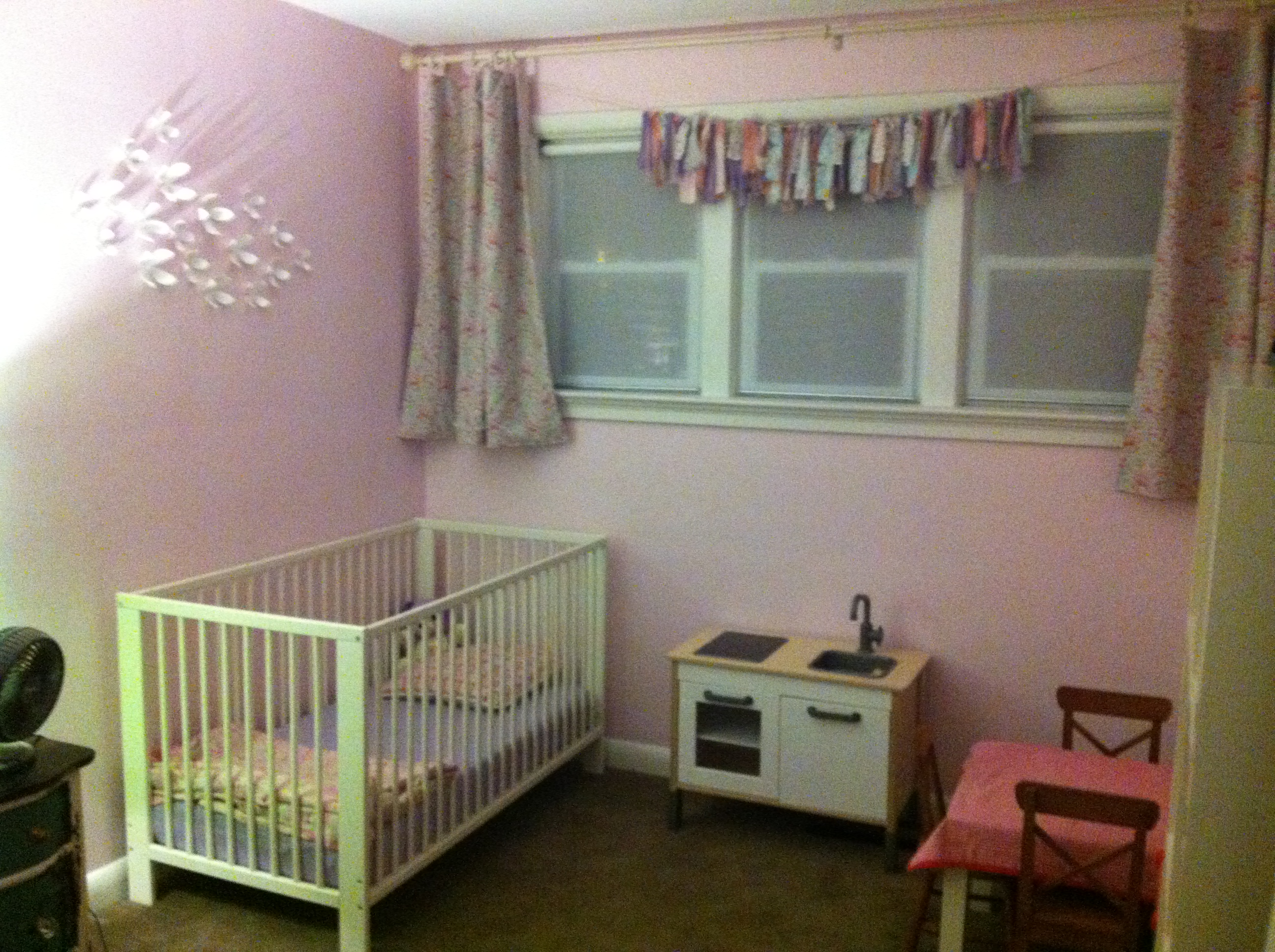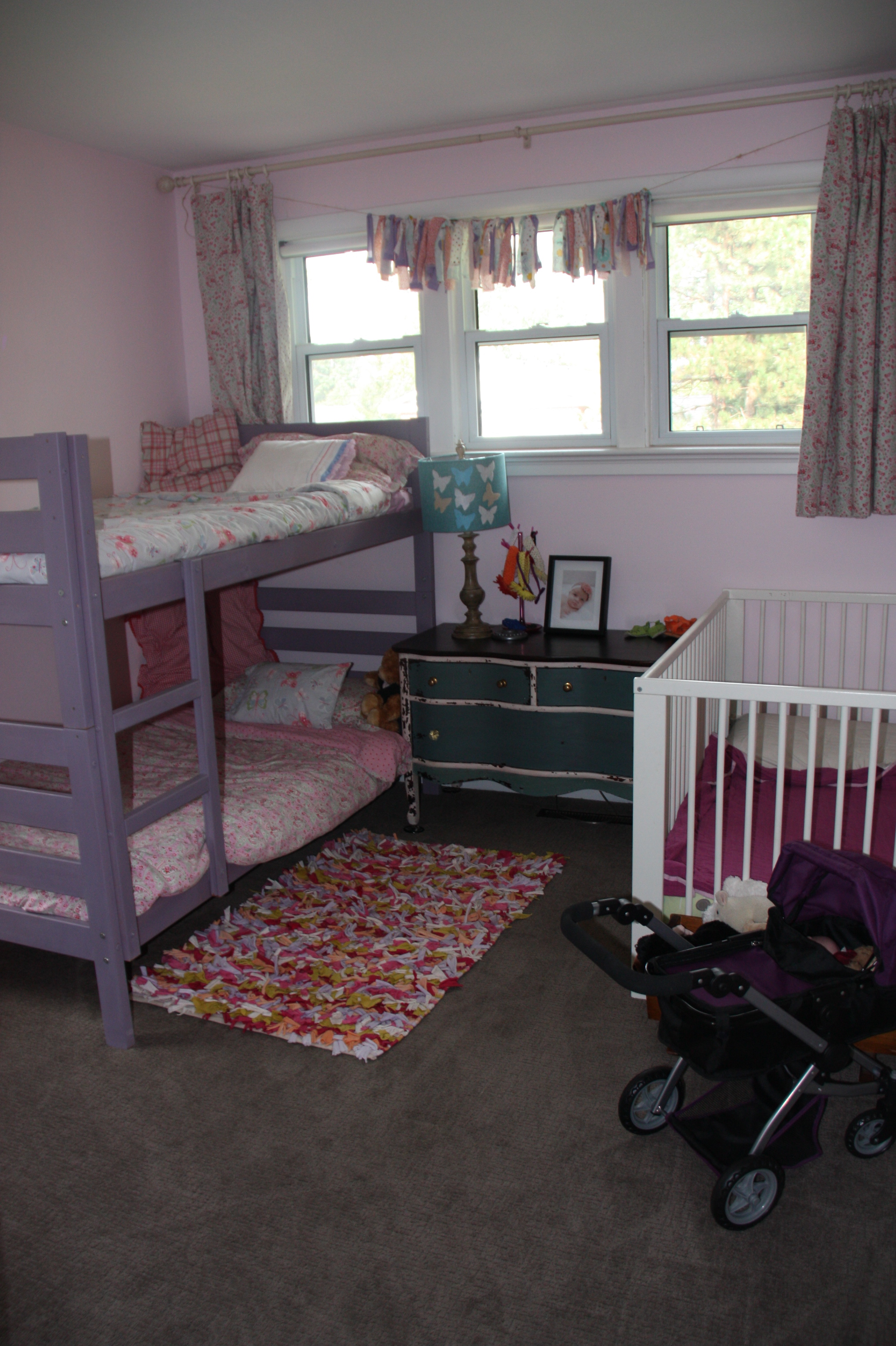 Leah’s room has already been changed around several times since we moved in which isn’t surprising if you know me at all. It still isn’t finished so maybe this is part one of this post. Once we found out we were expecting another baby (which was very shortly after we moved in), we knew that it was only a matter of time before one of the children’s rooms would be required to house two kids. We just had to wait and see which room it would be based on whether it was a boy or girl. Turns out it was another girl. Meet Evelyn!