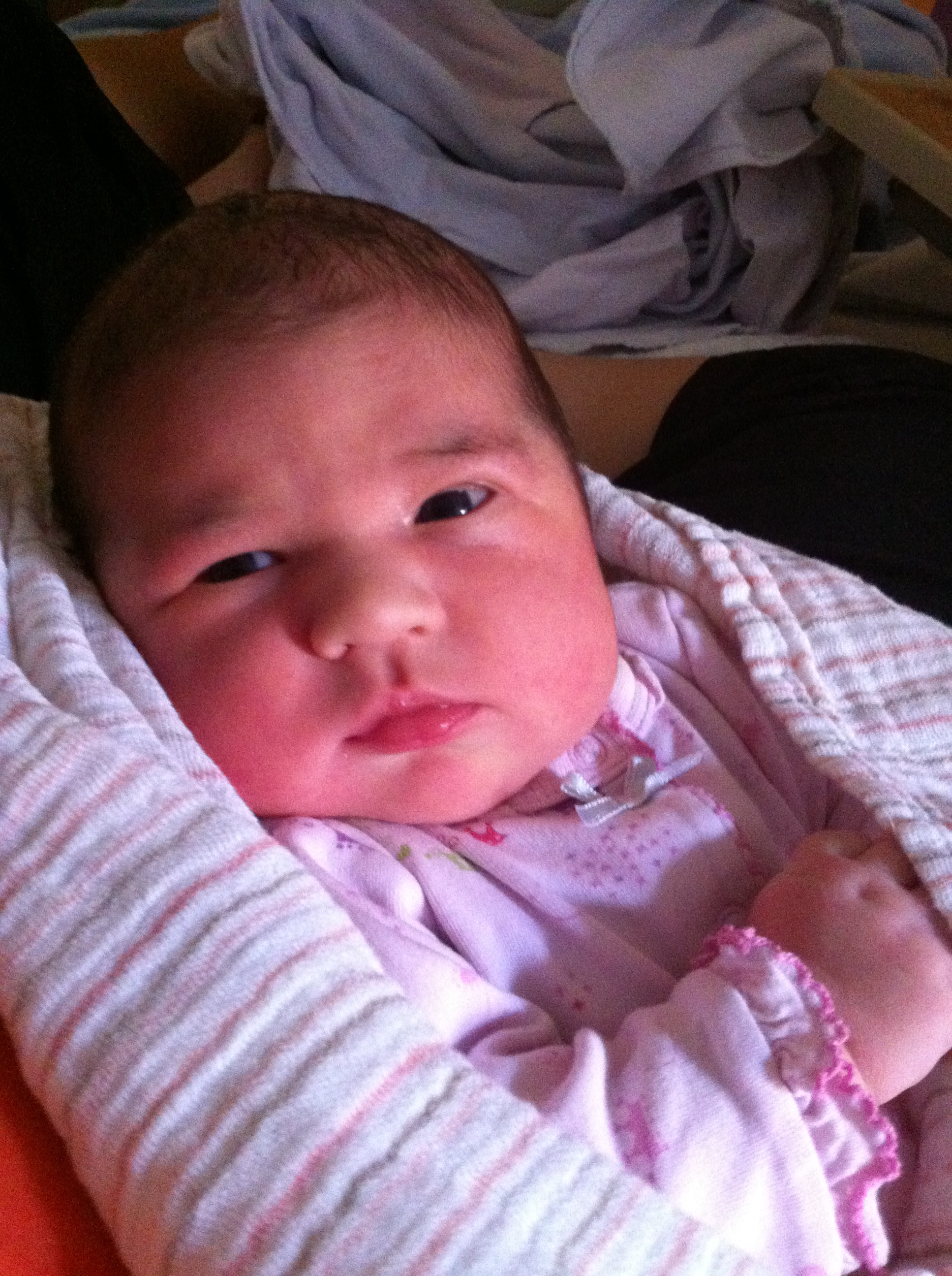 She joined us August 1st. We had another successful VBAC with her. It was a little different experience than with Leah as she was a pound and a half heavier and labour was almost 24 hours, but it was a wonderful experience and we are so excited she is here with us and that no surgery was required! We are doing really well and she has been sleeping “through the night” since her first week (I didn’t even know this was possible and take no credit for it! Maybe it was her large starting size or maybe she’s going to pull a fast one on me in the weeks to come.)