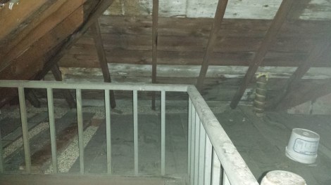 When we bought the house, the attic was a typical dark, dingy, stinky, scary attic.  It is a walk-up attic and the staircase is a repeat of the one below it so we knew converting it would be a great option since it wouldnt involve any real structural changes to make it work.  There were a few issues though.  The floor boards were not in great shape and the floor was filled with vermiculite.  In case you aren’t familiar with vermiculite,  it was a commonly used insulation(very often in an attic)  but a large amount of it was later found to have been contaminated with asbestos.  Ours was tested prior to our purchase and it was found to contain a small enough percentage of asbestos that it was not legally considered an asbestos containing material.  If we didn’t plan to do any work to our attic or anything else that would disturb the insulation we may have left it but in our case we planned to finish the attic and we also planned to put new lighting in all the bedrooms below it.  So asbestos containing or not,  we needed to remove it because it would have created a huge mess.  We decided to hire an abatement company just to be on the safe side and honestly to save a ton of work.  The abatement company came the first weekend we had possesion and within a few days had the attic squeaky clean and ready for us to work on.  There was only a small window in one gable and a vent in the other gable,  so Aaron cut larger holes and we had all of our material boomed up and into the space before he installed new windows.  At this point the material sat for over a year.
