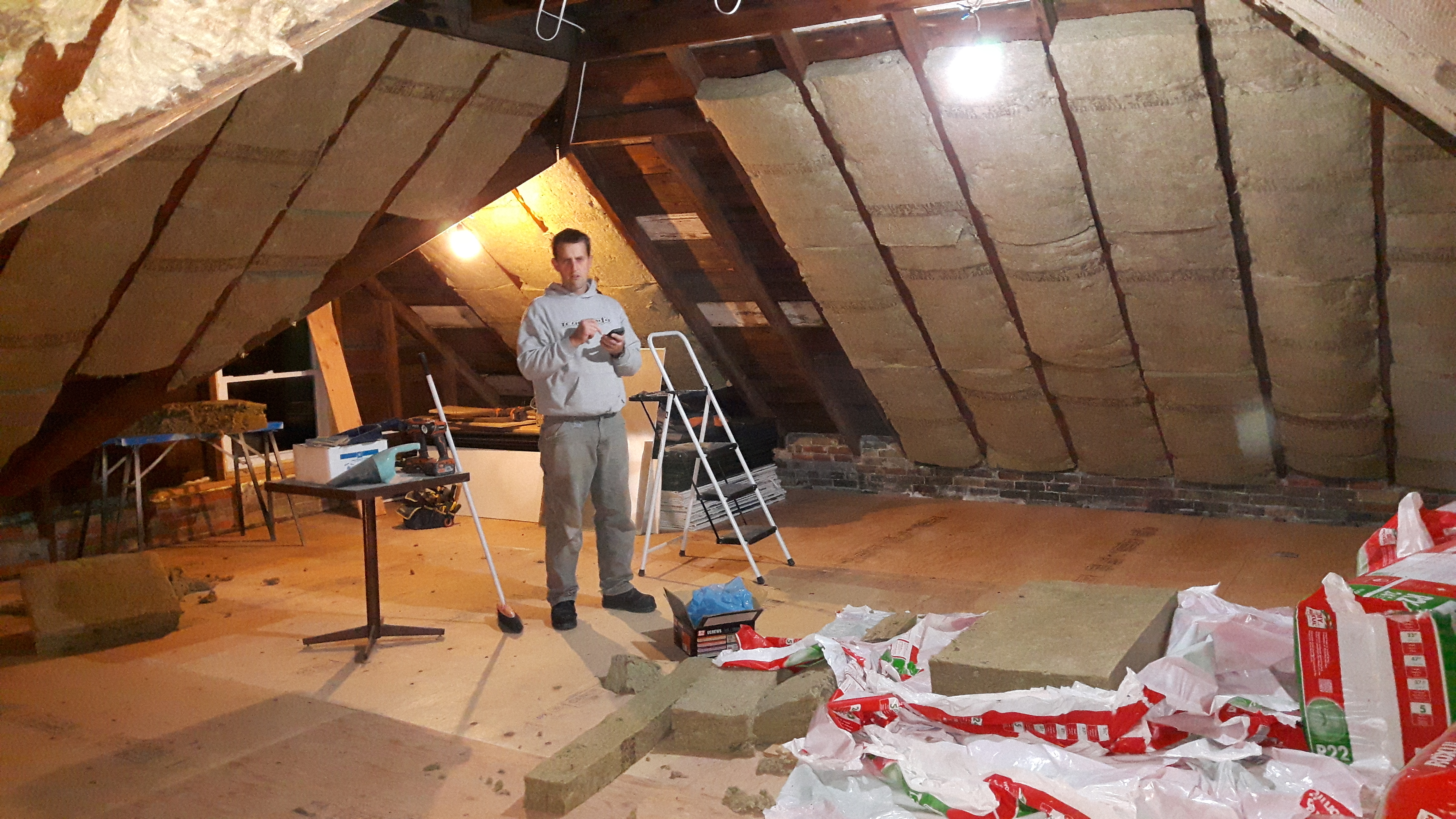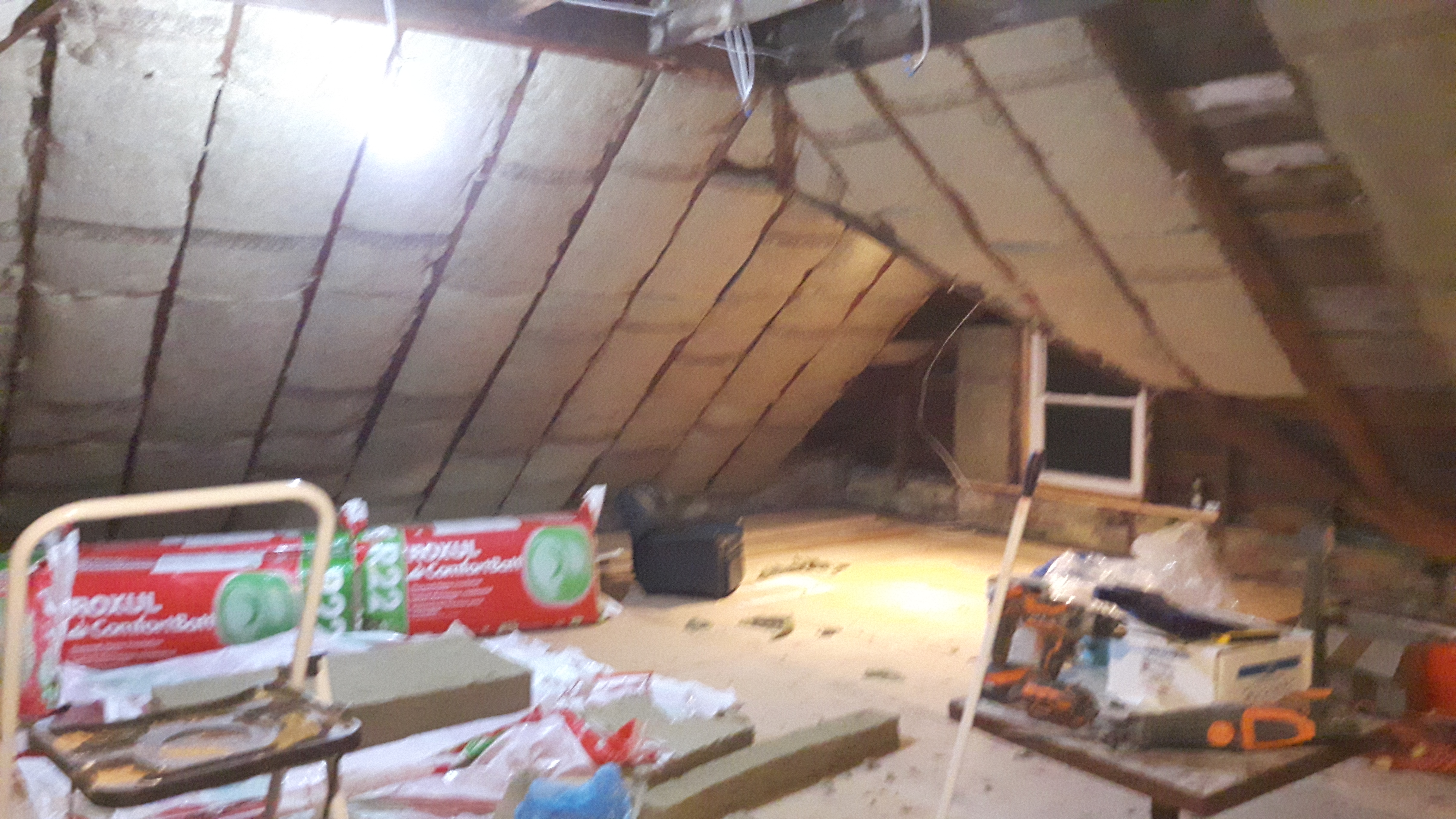 I missed a few of the in between steps but this was after we put down a new subfloor, removed the chimney and staircase and started insulating.