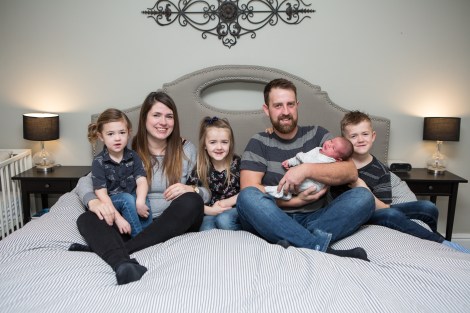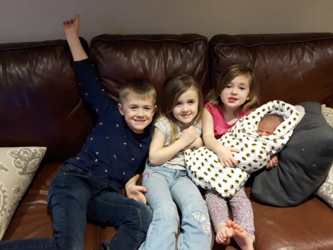 At my 37 week appointment my midwife felt that baby had moved sideways into a transverse position. She suggested some exercises to help him move, but also planned to refer me to an OB to do an external cephalic version (ecv). At this point I asked for prayer that baby would move into the correct position and made some attemps at spinning babies exercises. I had not felt him move out of a head down position other than noticing kicks in a different spot and over the course of the next week I did not notice any huge movements but did note that I kept feeling kicks in different areas, so I think he was all over the place. A week after we discovered he had moved, Aaron and I headed to Stratford to have the ecv. When we got there we were taken into triage and I was given a gown to change into. Then they moved us into a labour and delivery room and I was hooked up to the monitor. I was monitored for a half hour or so before the OB came in and used an ultrasound to say for sure what position baby was in. He was head down! So we did not have to go through with the ecv and I was thrilled because I had heard it was uncomfortable and could possibly not work anyway. Later that day I had a midwife appointment so Aaron was able to come with me to that. My midwife usually would not do any cervical checks until closer to my due date but because being overdue could complicate things for me because of the vbac (Stratford will not use oxytocin for induction or augmentation in the case of a vbac) we decided to do a stretch and sweep and see if we could be proactive. The next day I was supposed to be somewhere in the morning but I felt like I really needed to stay home and get some things in order and clean the house a bit. We went to bed that night and I woke up around 2 to a very mild contraction. It wasn’t painful at all but 5 or 6 minutes later there was another one. And then another etc. So I sent a text to Aaron’s sister to make sure she was on call and ready to come over when I needed her to watch the kids. After getting ahold of her I went back to bed and while I was lying there the contractions started to get painful. I called my midwife and she headed out. By 4:15 or so Aaron’s sister and the midwife arrived. My contractions hurt but they weren’t that bad and they were probably around 4 minutes apart. I was 4 cm so I got up and went downstairs to have a bite to eat and move around a bit. That got things happening even more and I was starting to have to concentrate to get through the contractions. After a bit of that I went upstairs and my midwife checked me again. I was 6-7 cm so she suggested that we head out if I was wanting to go to the hospital. I’ve never had a home birth and I felt that it wasn’t a decision I wanted to make at the last minute when I was pretty sure I could make it to the hospital. Our entire second floor is carpet, I feel like that’s just something you have to mentally prepare for! I know that midwives know what to do to make sure your house doesn’t look like a crime scene afterwards but I felt okay for the drive still and if we had waited around we probably would have experienced murphy’s law and waited forever. So off to the hospital we went. It was April 6, and it was snowy! We arrived at the hospital at 6:45 and I laboured while the midwife got to work doing her thing getting set up in the hospital room. The second midwife showed up and after a little while I was checked again and was 9 cm. My water was breaking in stages and there was still some trapped that was causing pressure and preventing me from dilating the last cm. After we got rid of that things moved right along and began to have a strong urge to push. I actually can’t remember how long the pushing stage took but Aaron thinks it didn’t last as long as I remember so maybe my sense of time was a little off. Theo was born at 9:29 am. I say it all in a couple of sentences but it was intense. Like most women, I went through a stage at the end where I didn’t think I could continue. I am pretty sure I asked to be sedated and have my baby just taken out (🤣 it’s funny now) but sure enough my body did what it was supposed to do and I was able to bring a 10 lb. 3.5 oz. baby into the world. He was our biggest yet by 6 ounces. He looked like a mixture of Myles and Leah with Evelyn’s colouring. I loved that he came directly to me and we got to spend the first hour or so of his life uninterrupted before he was checked over. And I loved that we were able to take him home just a couple hours later and spend the day resting in our own bed with him. The kids met him that evening and have been in love ever since.